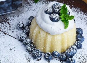 Mini Almond Bundt Cake with Fresh Blueberry Whipped Cream