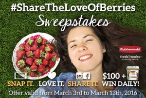 If you’re attending the festival, we are pretty sure you LOVE berries! Take a quick pick of you with your Wish Farms berries and upload to social media with the hashtag #sharetheloveofberries for your chance to win $100 from Wish Farms and a RubbermaidFresh Works Produce Saver. Daily winners everyday throughout the Florida Strawberry Festival and it’s as easy as Snap it. Love it. Share it. Win!