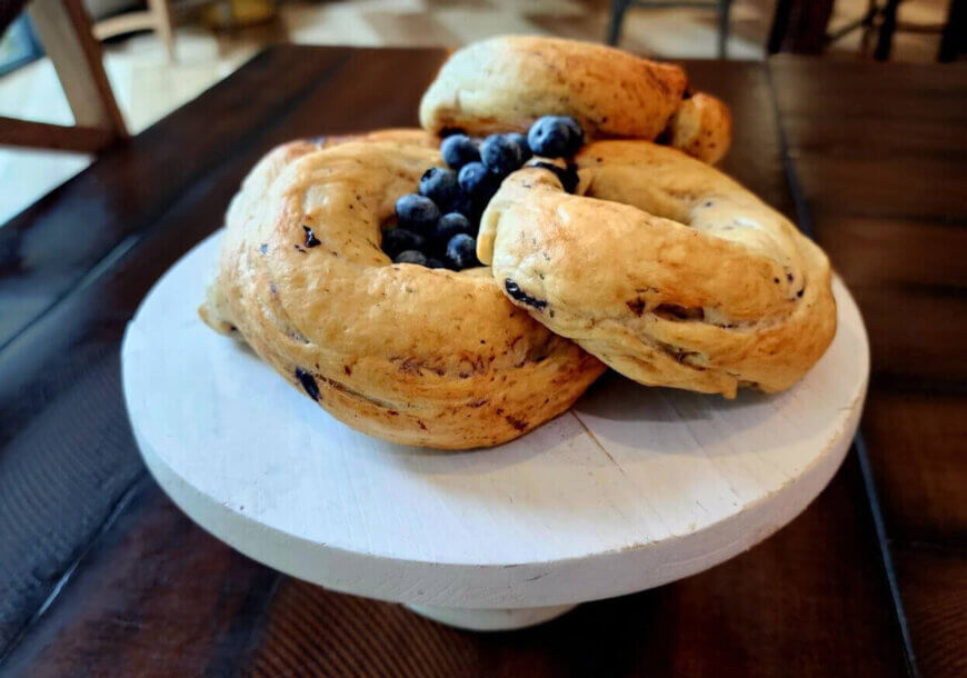 Gourmet bagels at home? Yes please! Bring the bagel shop vibes to your kitchen with these delicious homemade blueberry thyme bagels. Enjoy with cream cheese or butter for breakfast or as a tasty snack!
