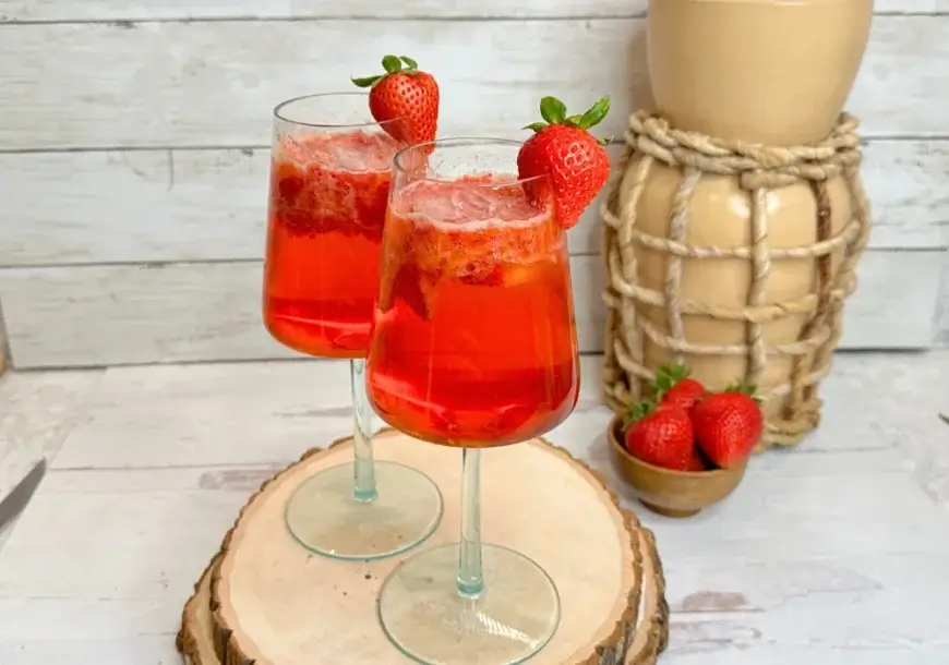 - Garnish with a strawberry and serve immediately.