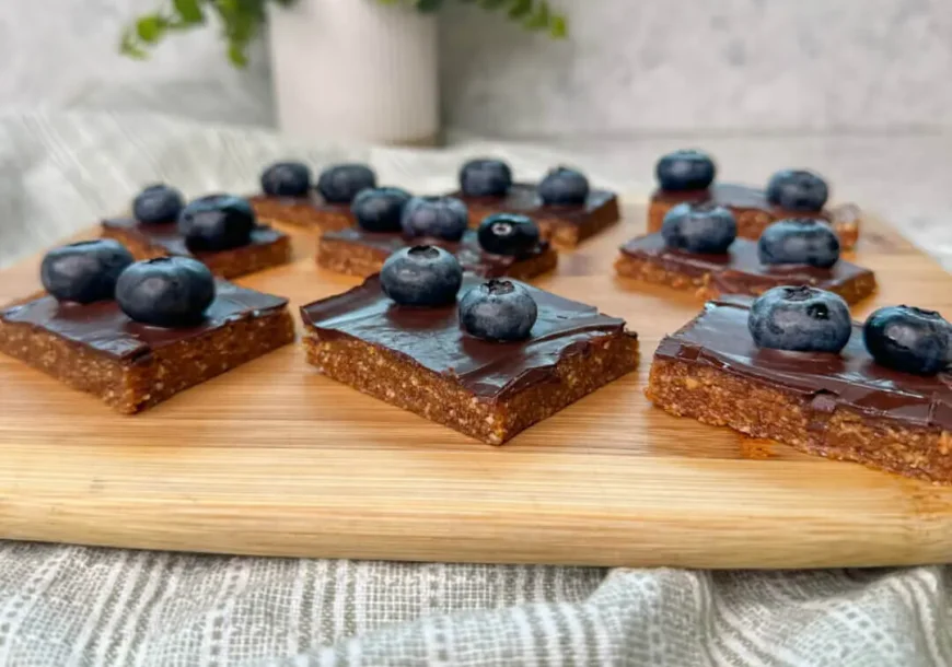 - Top bars with dark chocolate and blueberries.