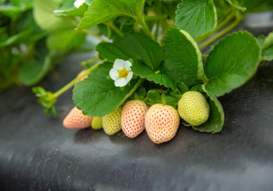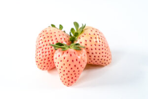 The unique white to blush color comes from a lack of anthocyanins – the pigment that gives strawberries their bright red color.